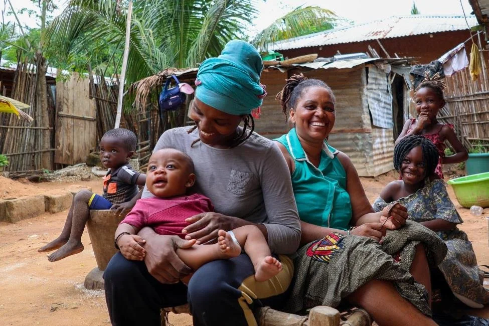 © IOM 2024/María Toro/ Internally Displaced Cadria Cassamo and family in their backyard in Mahate, Pemba. Cadria found work as a construction assistant in her own neighbourhood, as part of the Urban Durable Solutions Project.