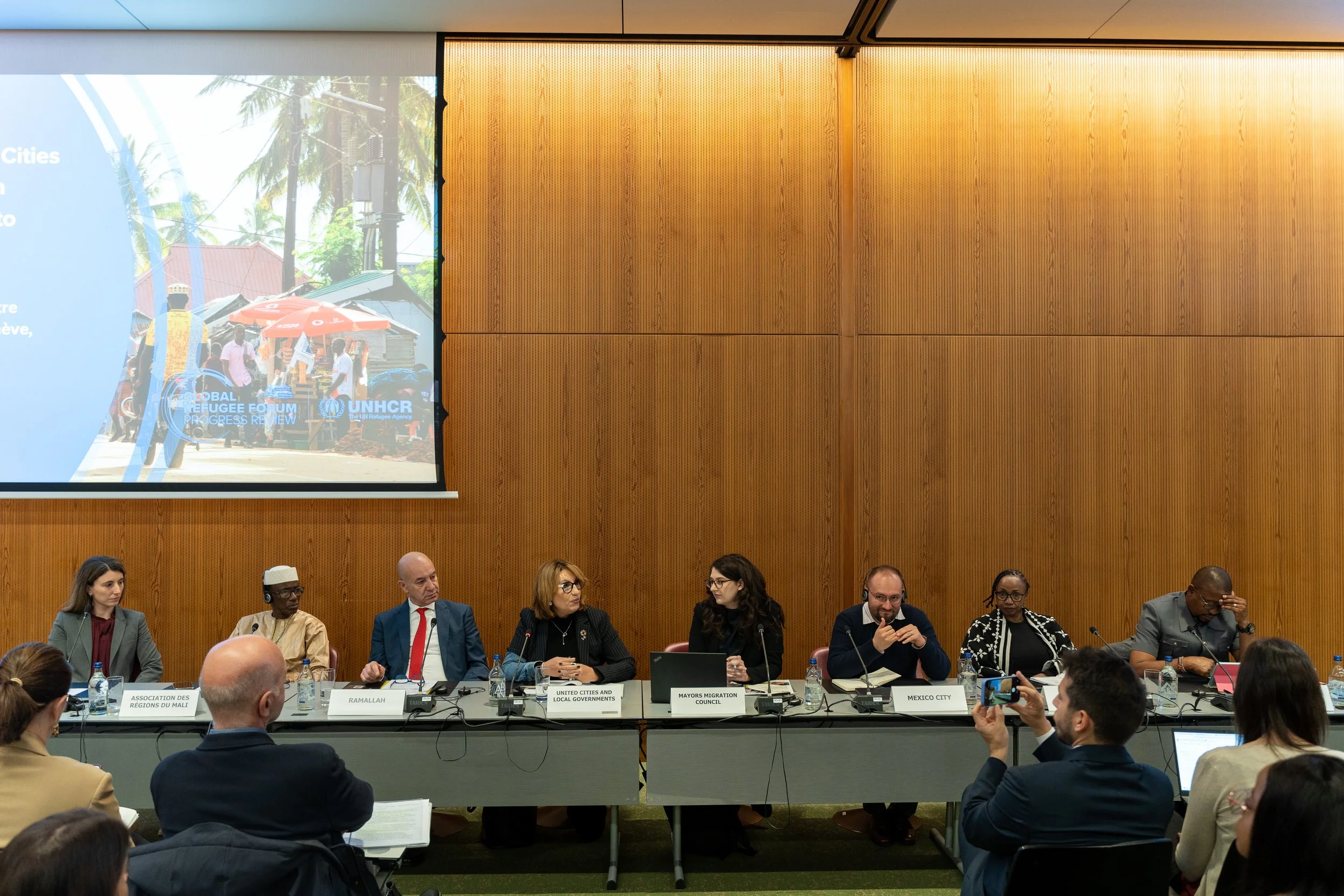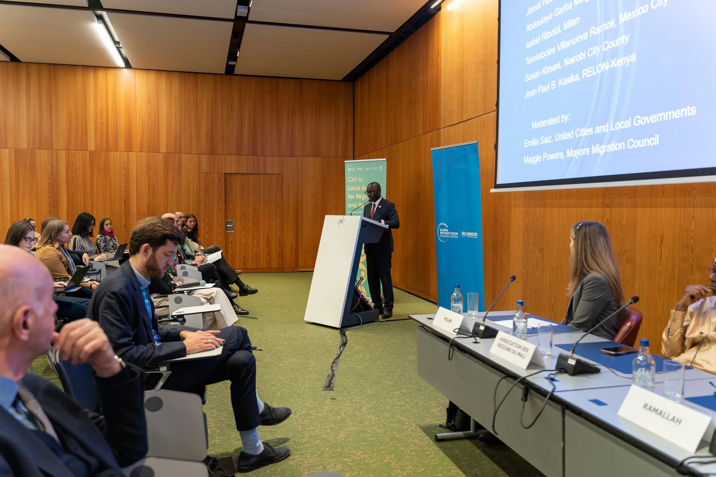 As governments and partners gathered in Geneva for the 2025 Global Refugee Forum (GRF) Progress Review, 9 local and regional government (LRG) delegates joined our Local Coalition for Migrants and Refugees (LCMR) to showcase how cities and regions are turning global refugee commitments into tangible local outcomes. The delegation—representing the Association of Regions of Mali, the Government of Catalonia’s Delegation to Switzerland, Nairobi City County, the City of Milan, Glasgow City Council, Mexico City, and the municipalities of Ramallah and Koboko—participated in the GRF plenary and multiple side events, presenting concrete progress in advancing the Global Compact on Refugees (GCR).